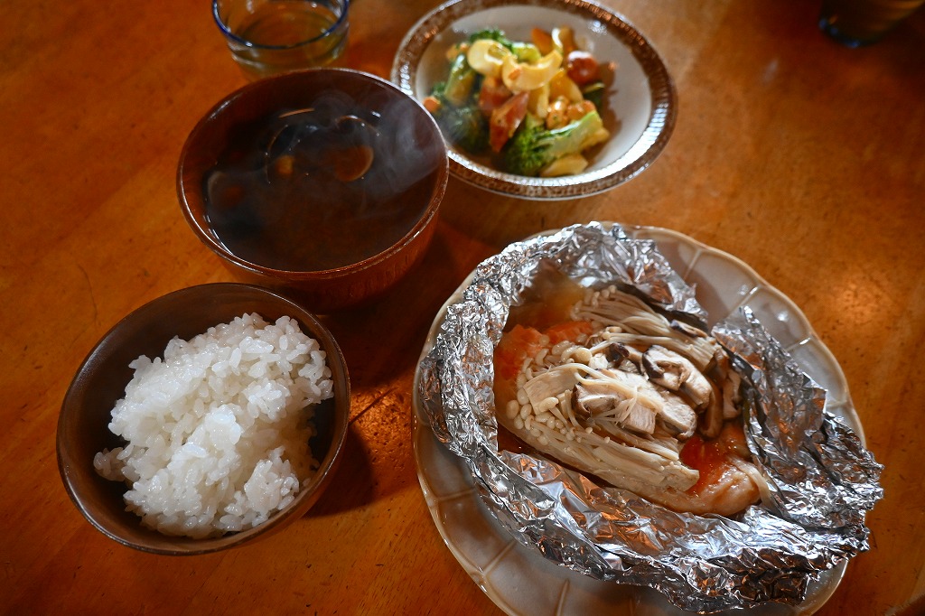 Kaorinが、鮭のホイル焼き・卵とブロッコリーのサラダ・宍道湖のしじみ汁を作って下さいました(*^-^*)
