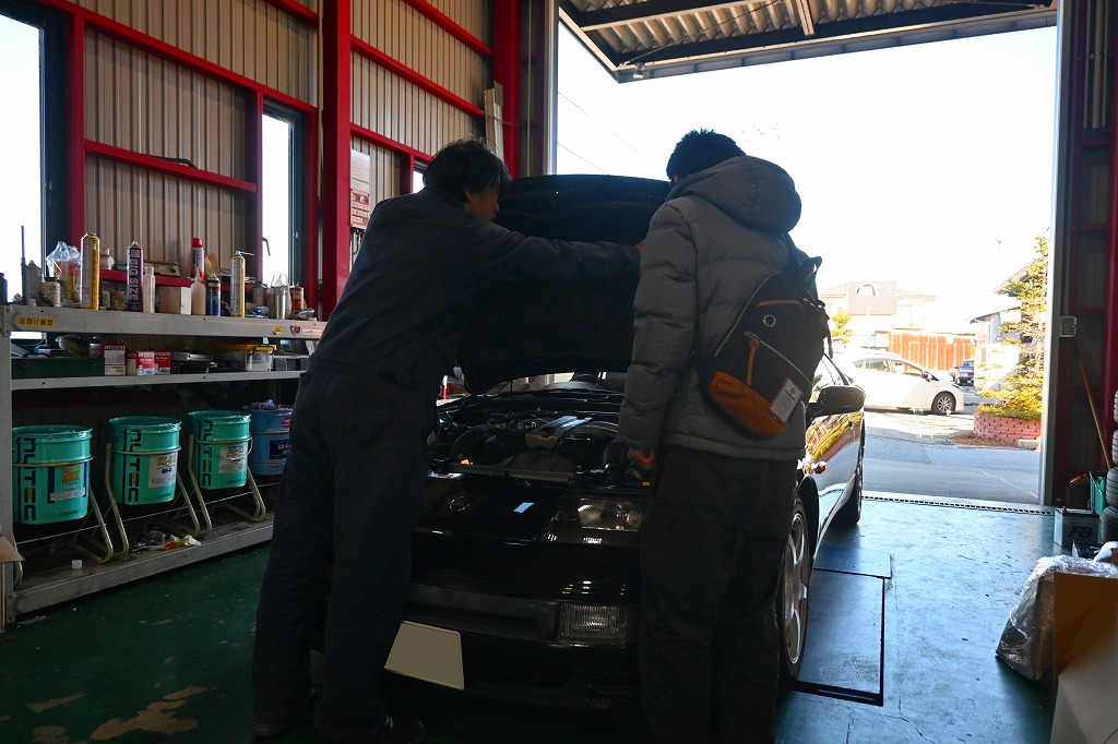 インプレッサ君のオーナー様が、お仕事の帰りにお店に作業を見に来て下さいました(*^-^*)