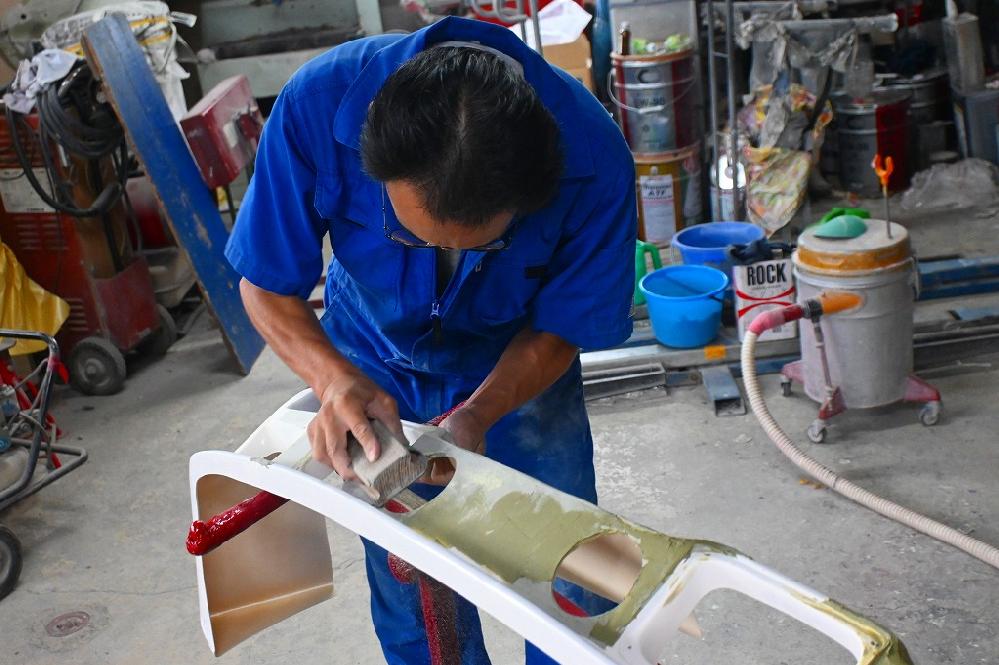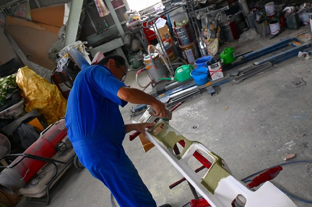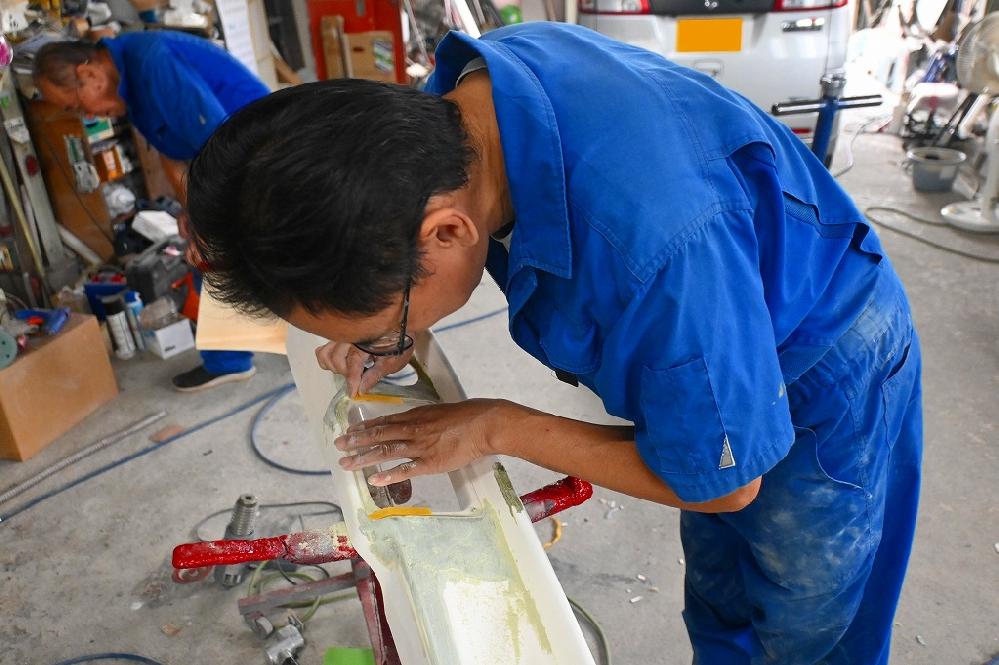 当時の劇車と同じ様にフロントスポイラーを加工して行きます。