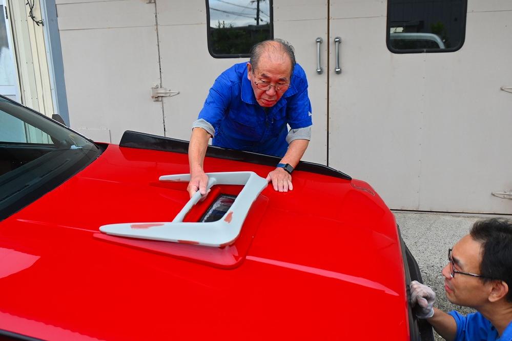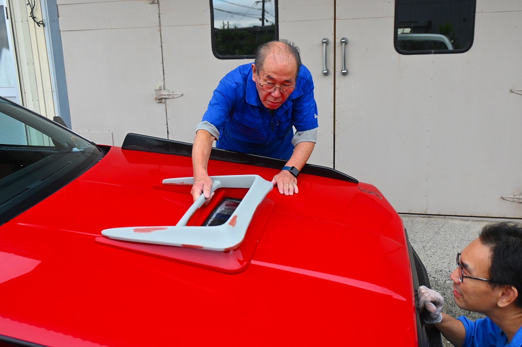 熟練マイスターと、リアアンダースポイラーの打ち合わせを行いました。