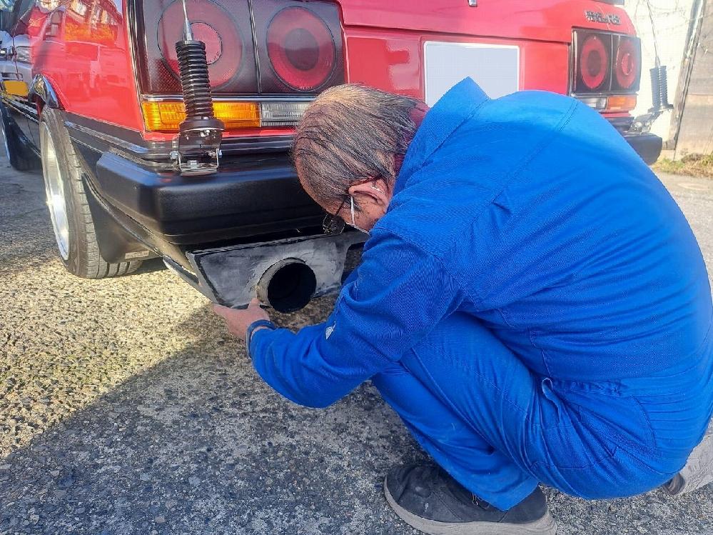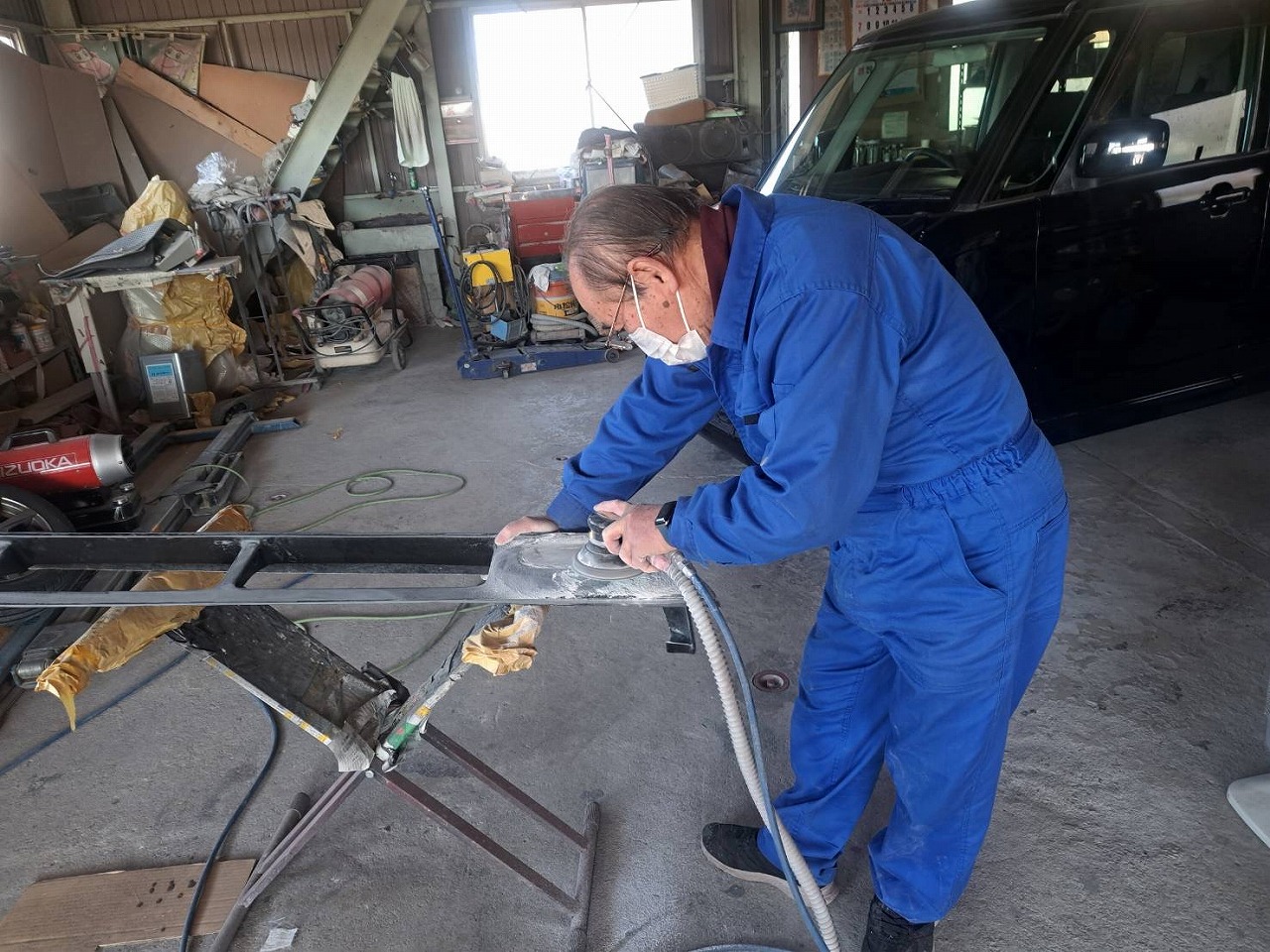 本日の熟練マイスターは、引き続き東京西部君のリアアンダースポイラー加工を行いました(*^-^*)