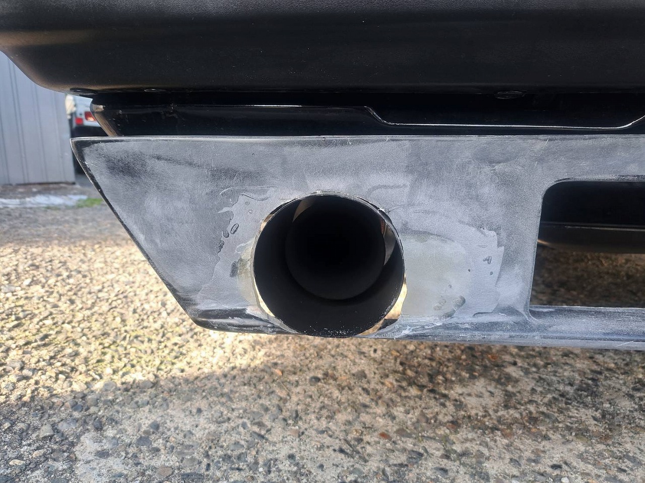 マフラーの位置に合わせてスポイラーの加工を行います。