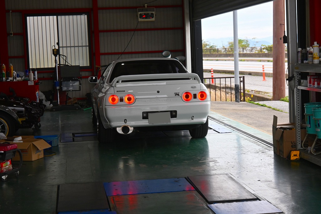 本日の工場長は、奈良32GTR君の4輪アライメント調整を行いました。