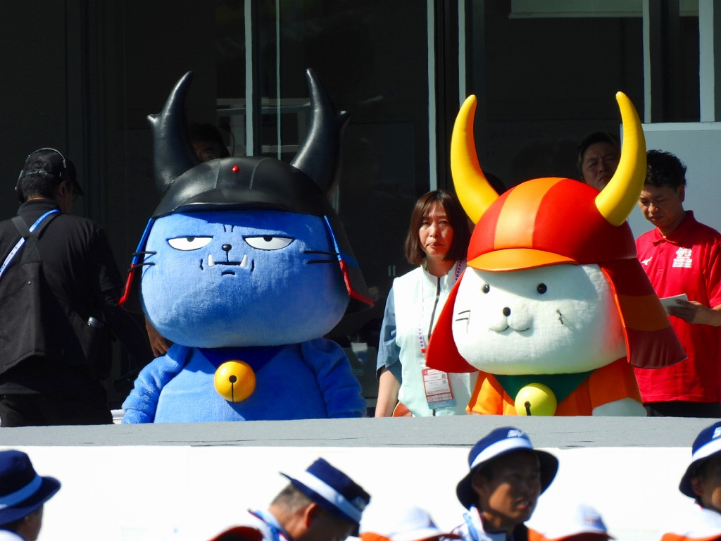 今日の国スポ閉会式で、ひこにゃんとわるにゃんこ将軍が来て下さいました(*^-^*)