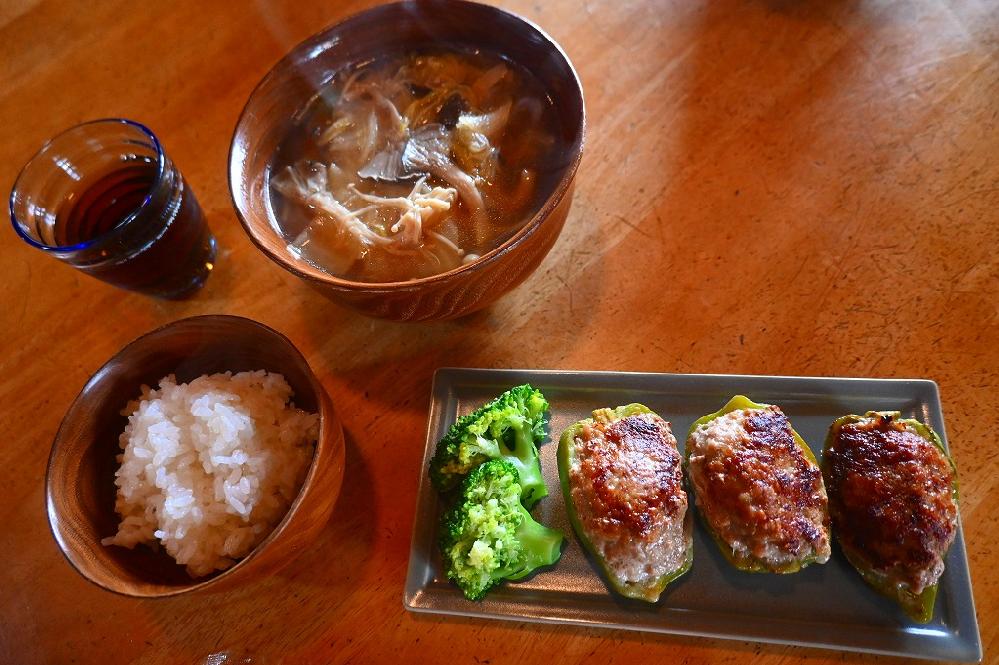 Kaorinが、ピーマンの肉詰め・鳥のスープを作って下さいました(*^-^*)