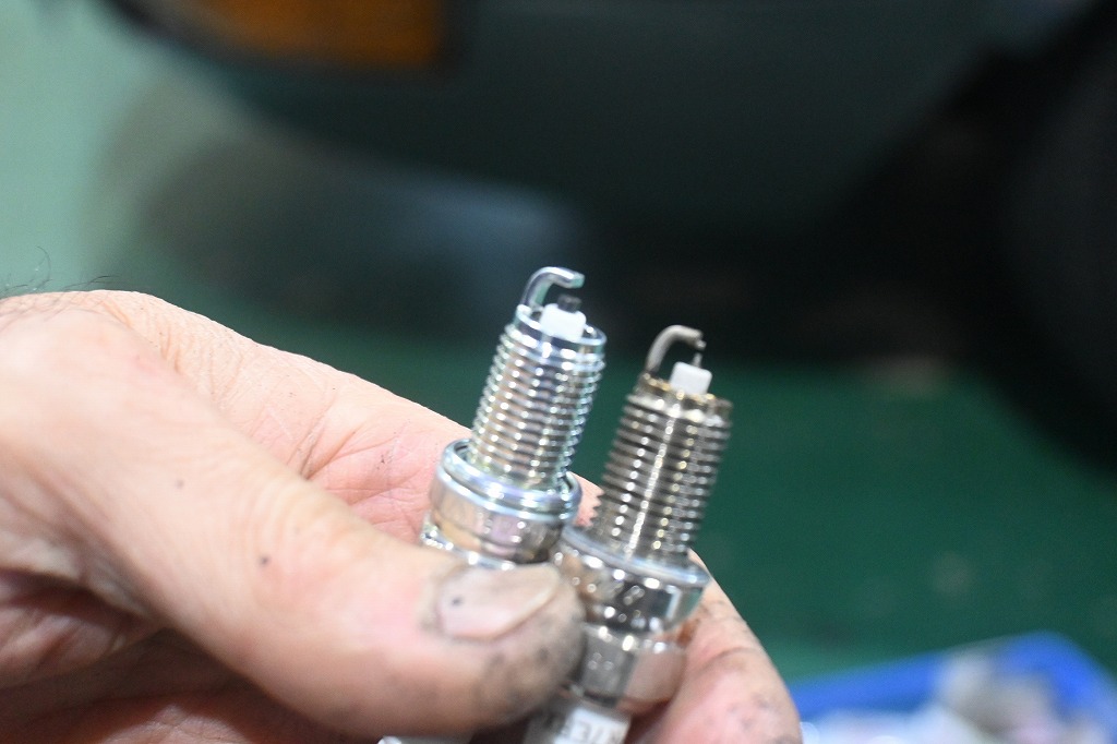 手前がイリジウムプラグです。先端が凄く細いですね(^▽^;)