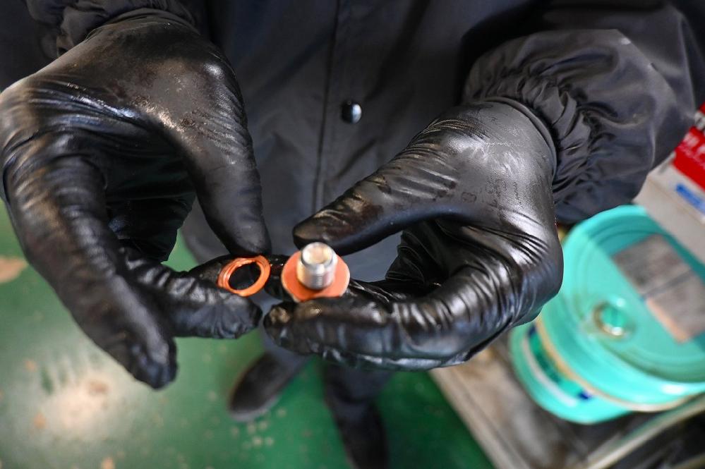 これでは、ドレンコックの隙間からオイルが滲み出て来ます。