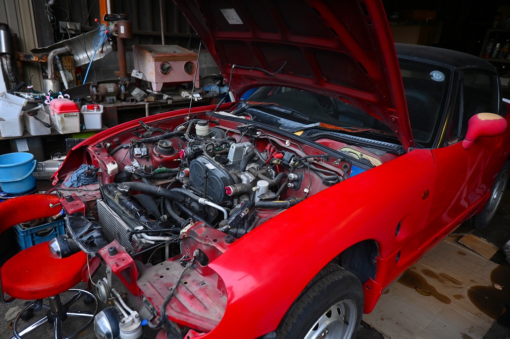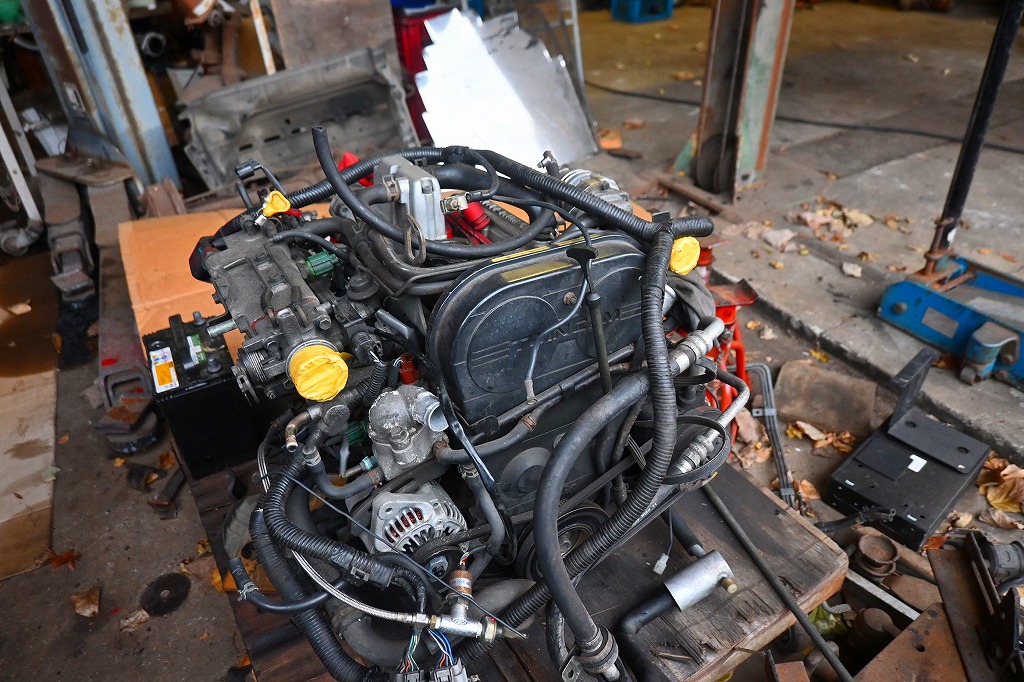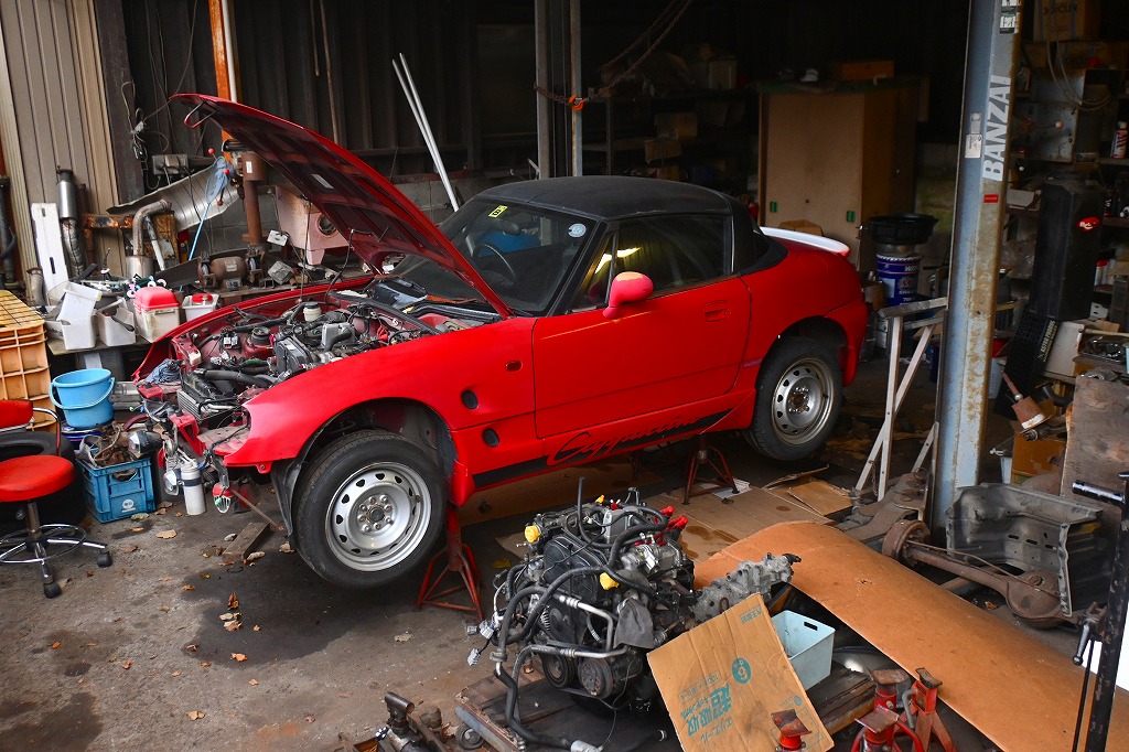 現在、ドナーのカプチーノ君からエンジン・ミッションを降ろして状態を確認しておられました(*^-^*)