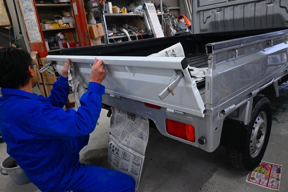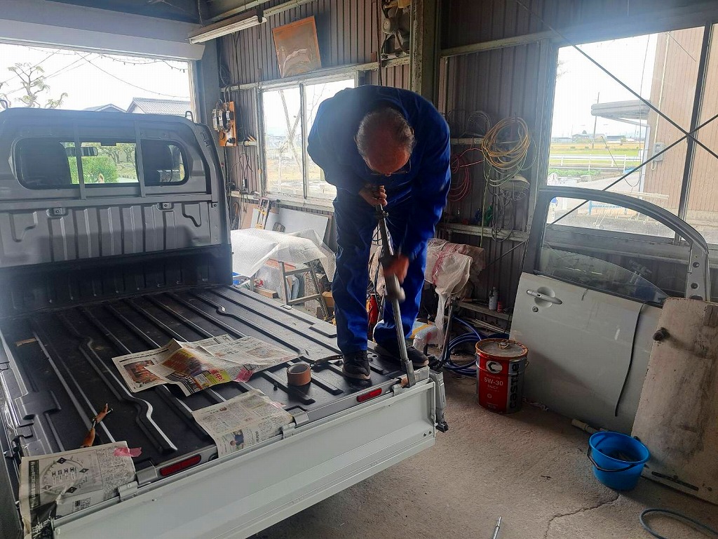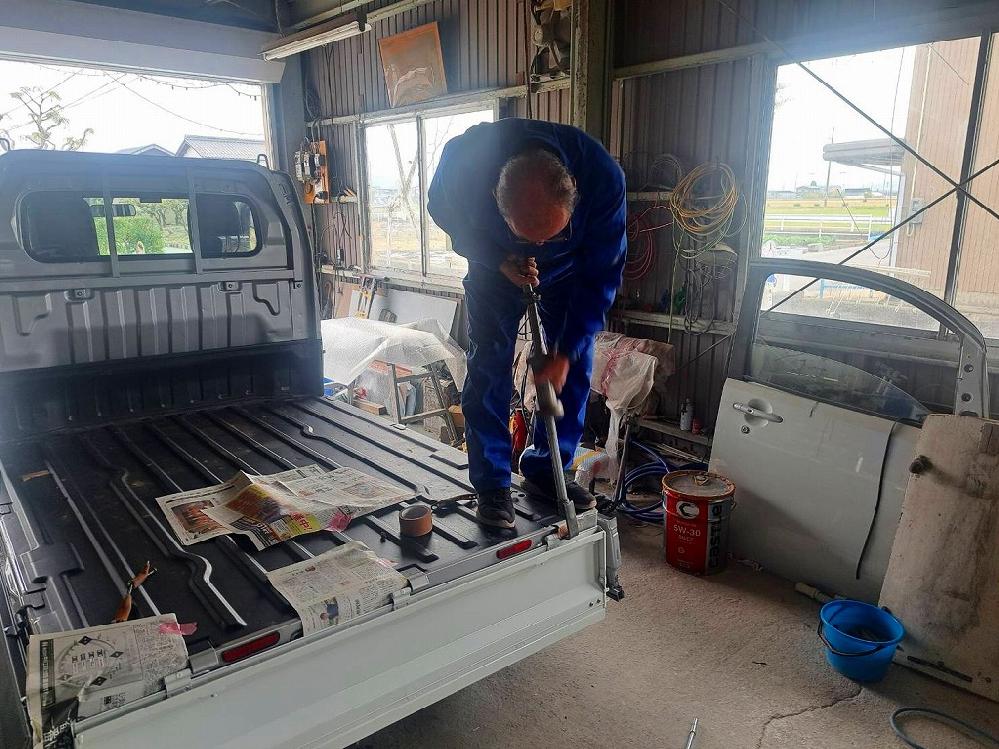 スバル360君のオーナー様にお願いされた、軽トラックのリアゲート修理を行いました(*^-^*)