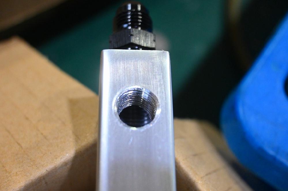 デリバリーパイプにドリルで穴を開けてネジを切りました(*^-^*)