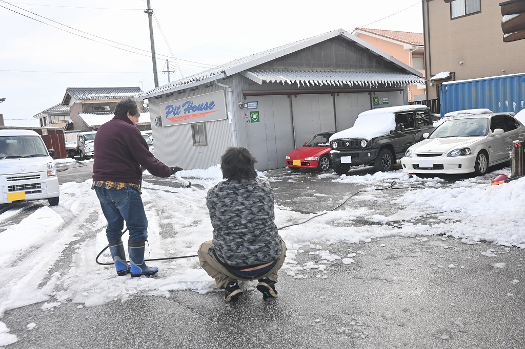 凍り付いた雪を溶かしながら、雪解けを行って下さいました(*^-^*)