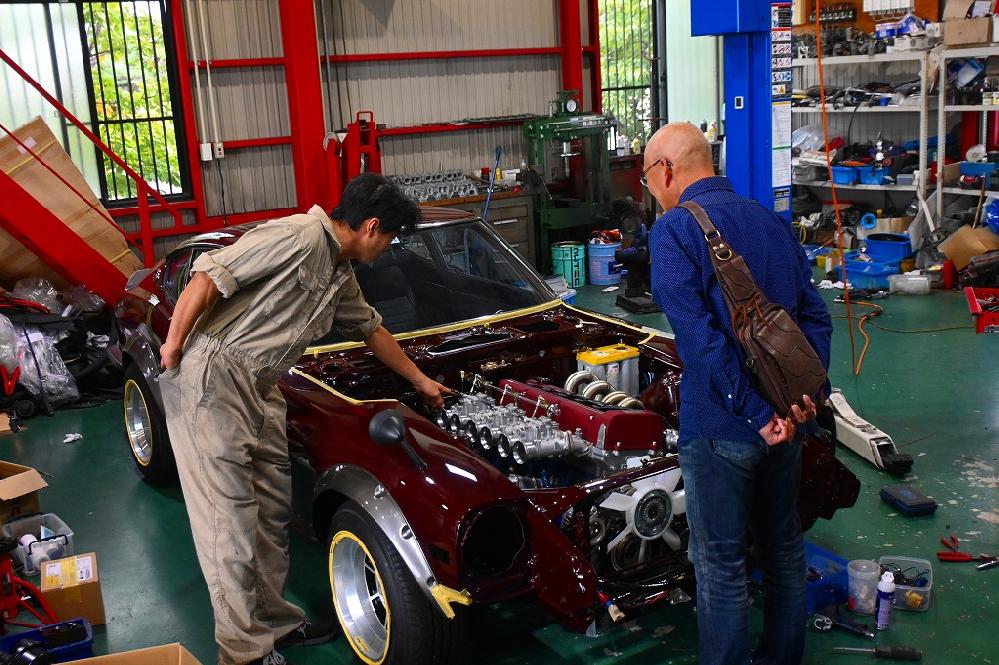滋賀GTSーR君のオーナー様が、愛知240ZG君の作業を見に来て下さいました(*^-^*)