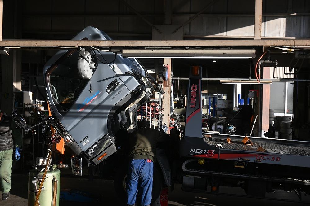 東京納車に向けて、提携工場に積載車の点検に行きました(*^-^*)