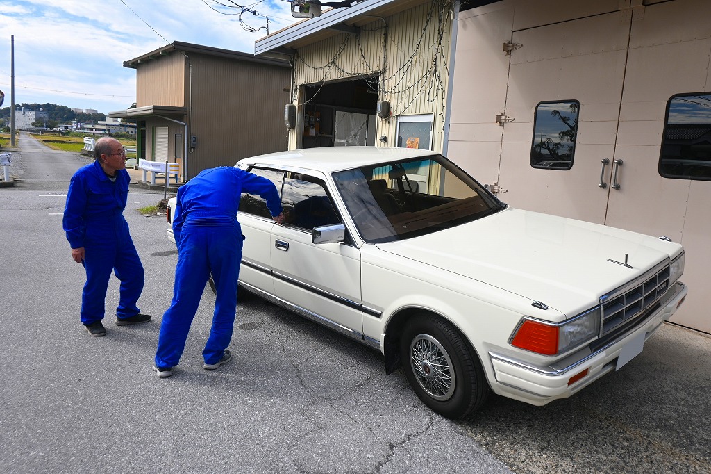 三重セドリック君を鈑金工場に運んで来ました(^-^)