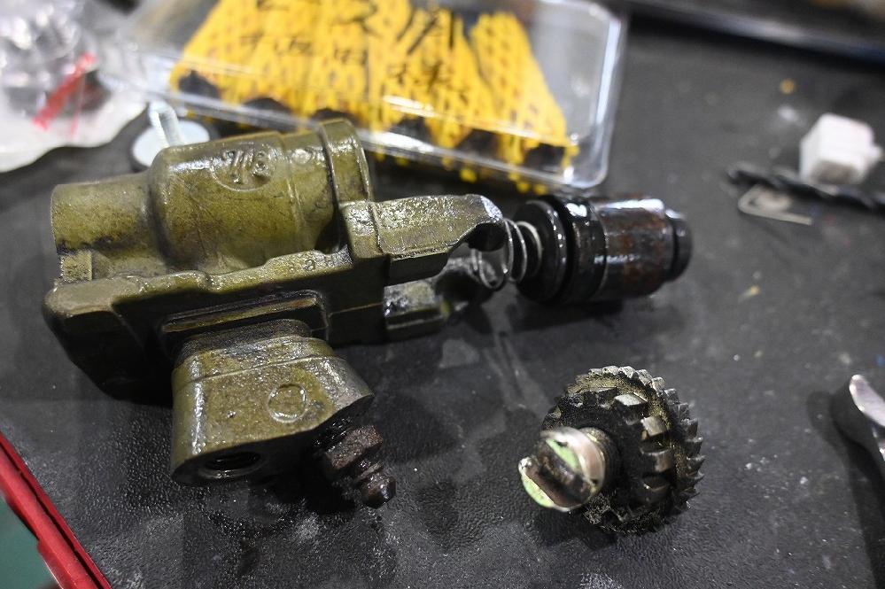 希少なホイルシリンダーを外すと、中のピストンが錆付いています。
