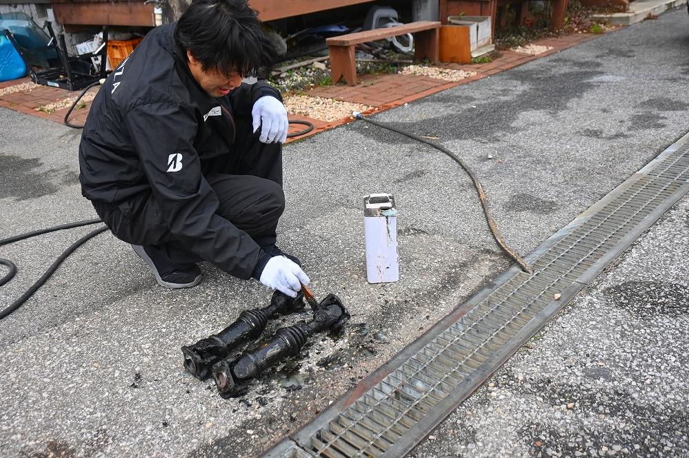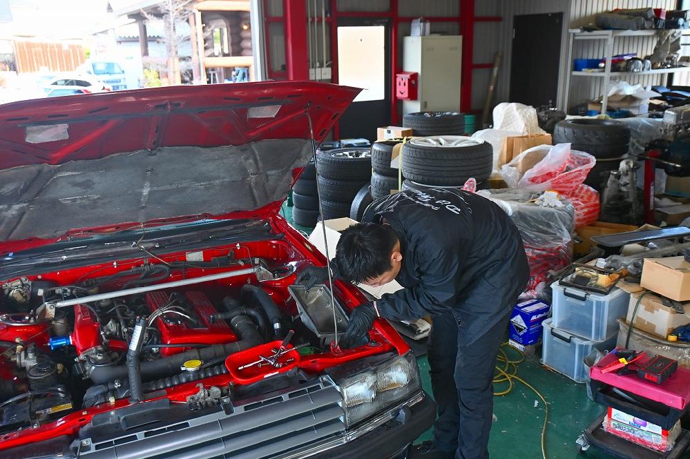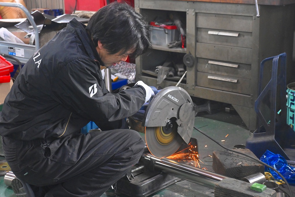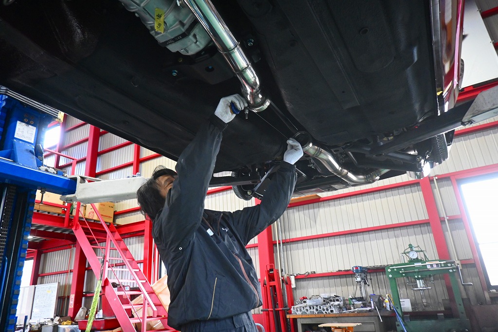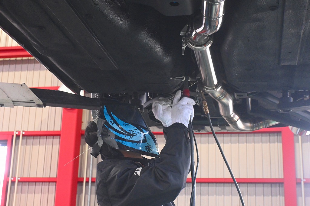 工場長が、オーナー様にワンオフマフラーの説明をして下さいました。