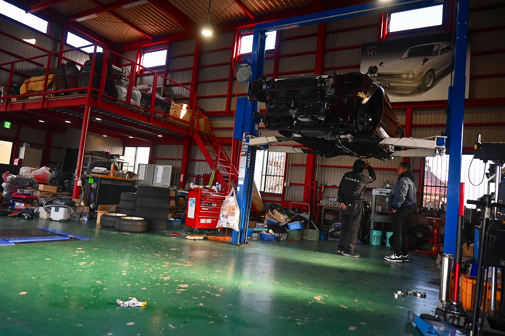 愛知240ZG君のオーナー様が、完成したワンオフマフラーを見に来て下さいました(*^-^*)何と(;゚Д゚)今日は、僕が大好きなベンツ君ですね。