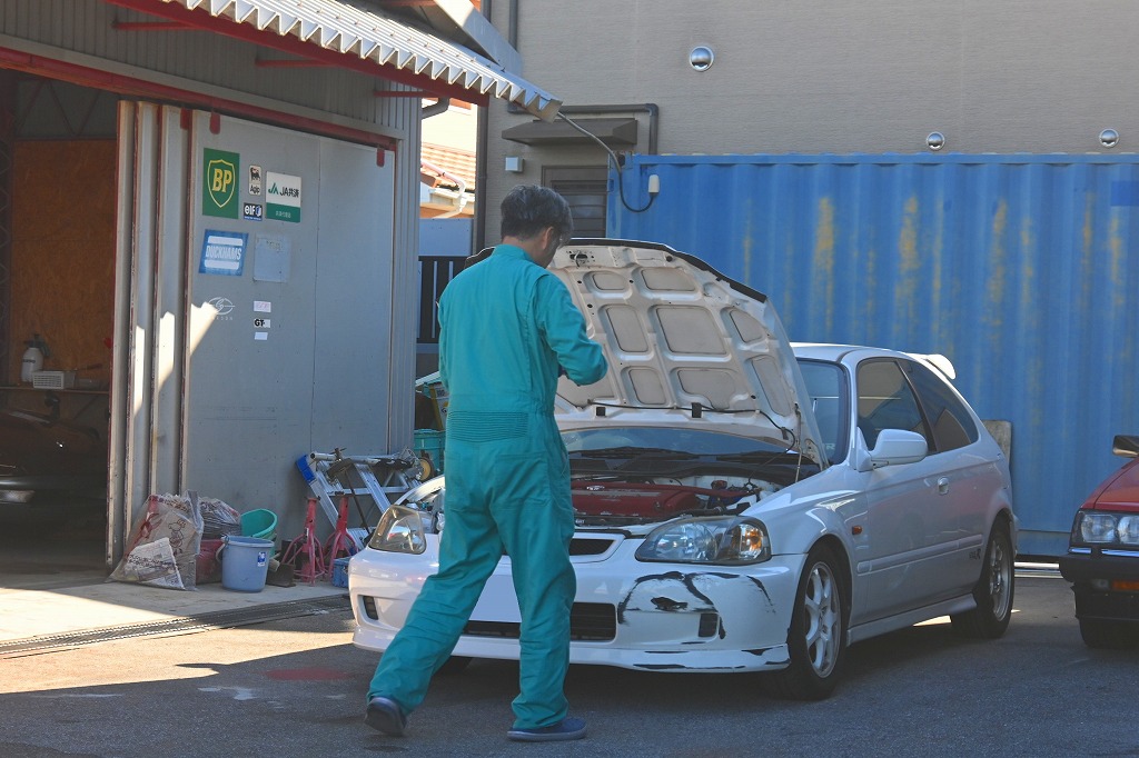 シビックタイプR君の修理に鈑金工場の社長さんが来て下さいました。