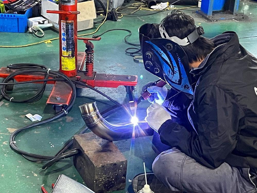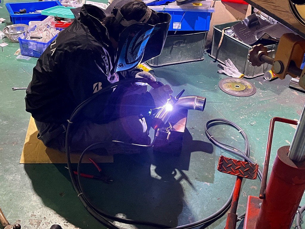 パイプの角度を調整しながら仮溶接を行い、何度も調整を繰り返し行っています(*^-^*)