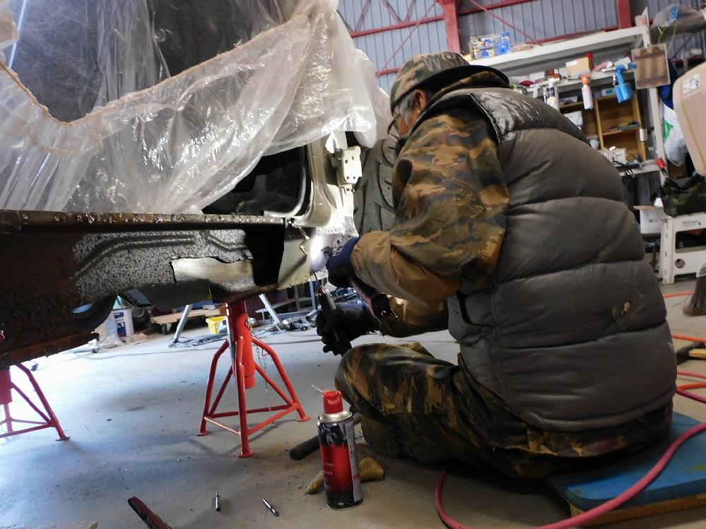 フルレストアは、ボディをドンガラにしてフロアーの裏も綺麗に仕上げて行きます。