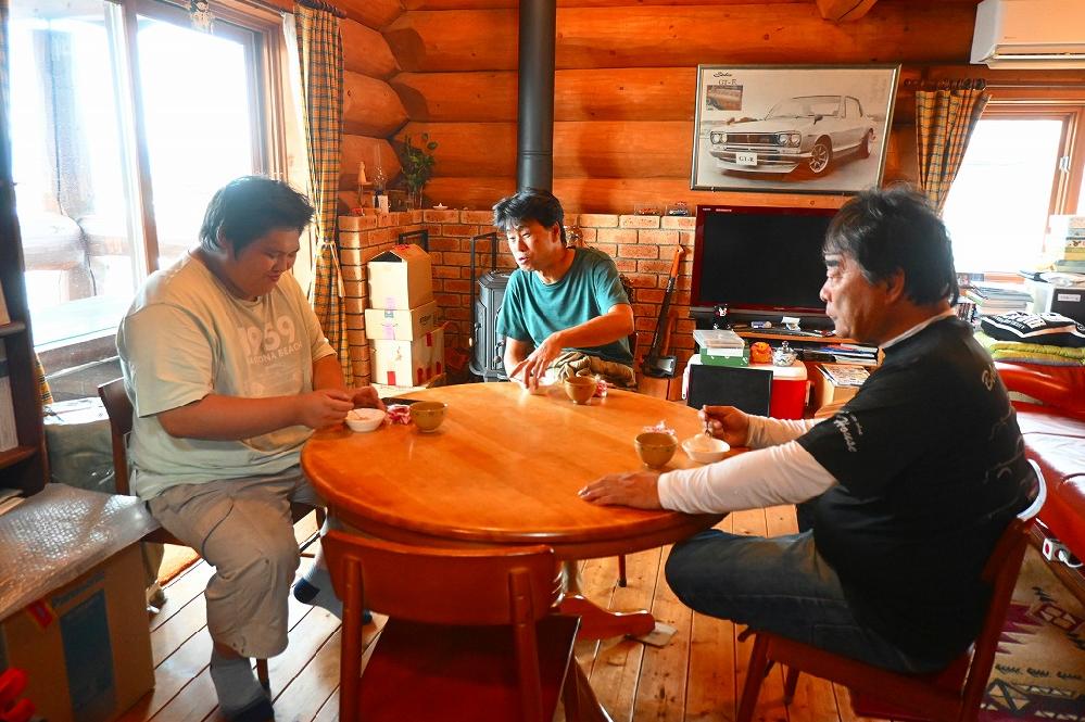 山梨ハコスカTC24君のオーナー様に頂いた信玄餅と東京ケンメリ君のオーナー様に頂いた、高尾山の塩大福を美味しく頂きました(*^-^*)