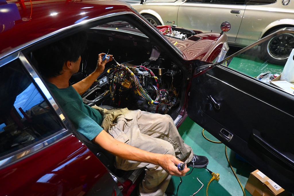 本日の工場長は、愛知240ZG君の室内ハーネスの加工製作を行いました(*^-^*)ハンダを使い配線を固定して行きます(*^-^*)