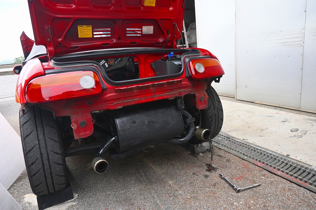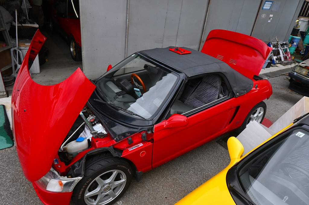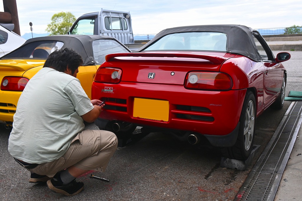 本日の赤ビート君は、リアバンパーを外してナンバー球の配線修理と錆止め塗装を行われました(*^-^*)