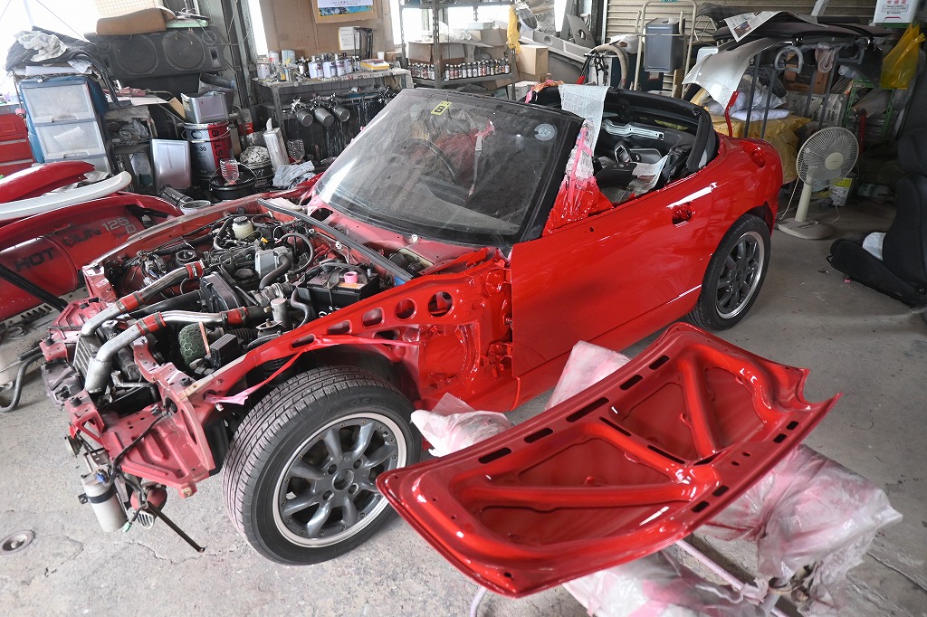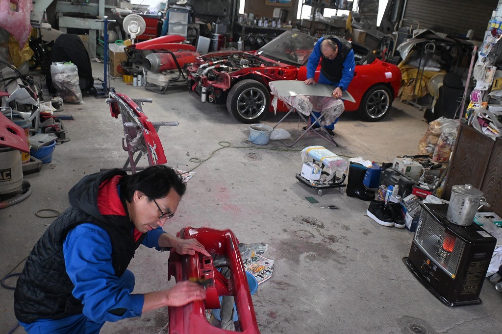 皆さん、軽スポーツの塗装も全て分解して作業を行うと大変な作業になります。