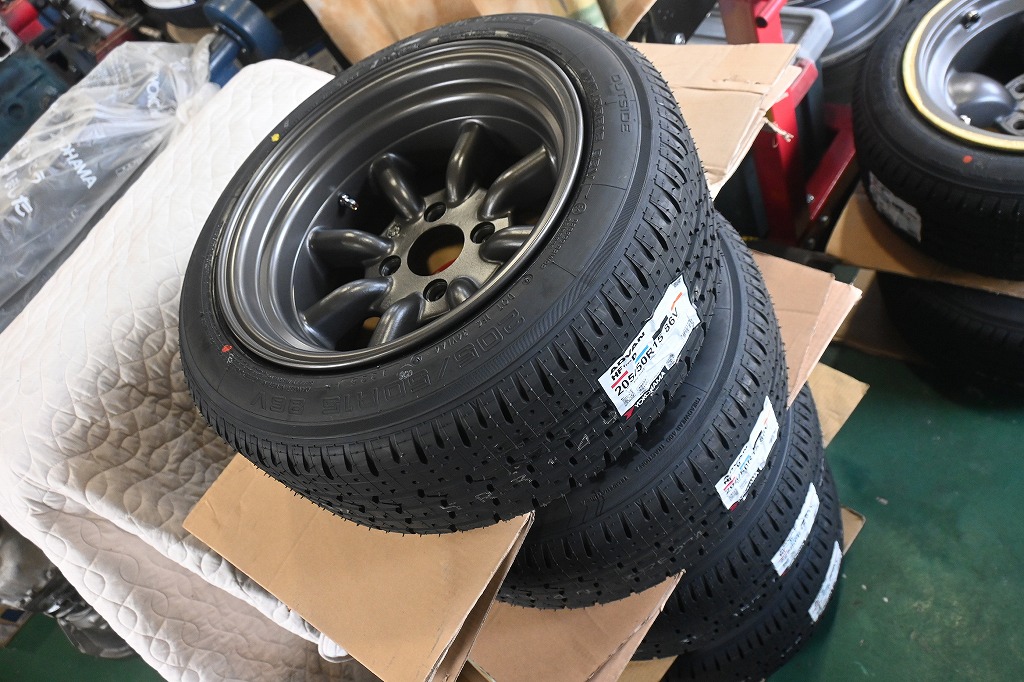 大坂240ZG君の新品のワタナベホイールにアドバンタイプDのタイヤを装着しました(*^-^*)