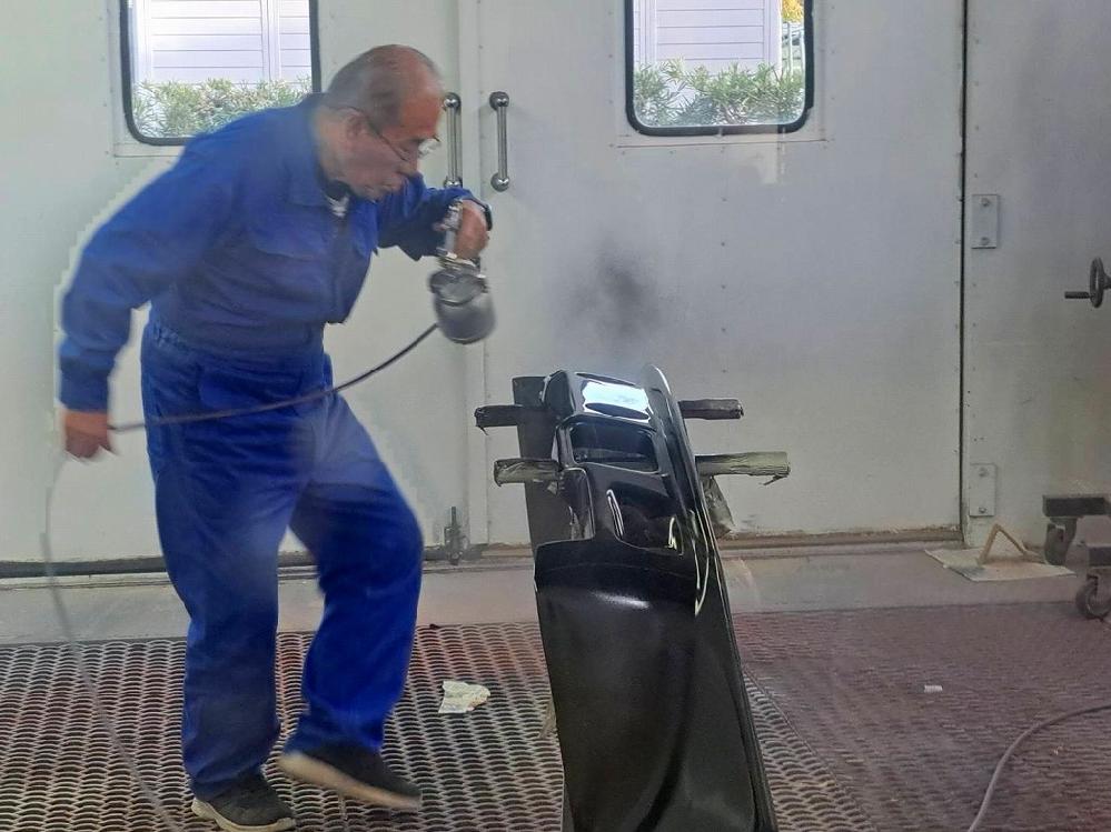 ボンネットを鈑金工場に運んで作業の準備に入りました(*^-^*)