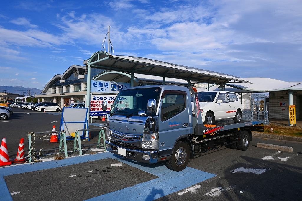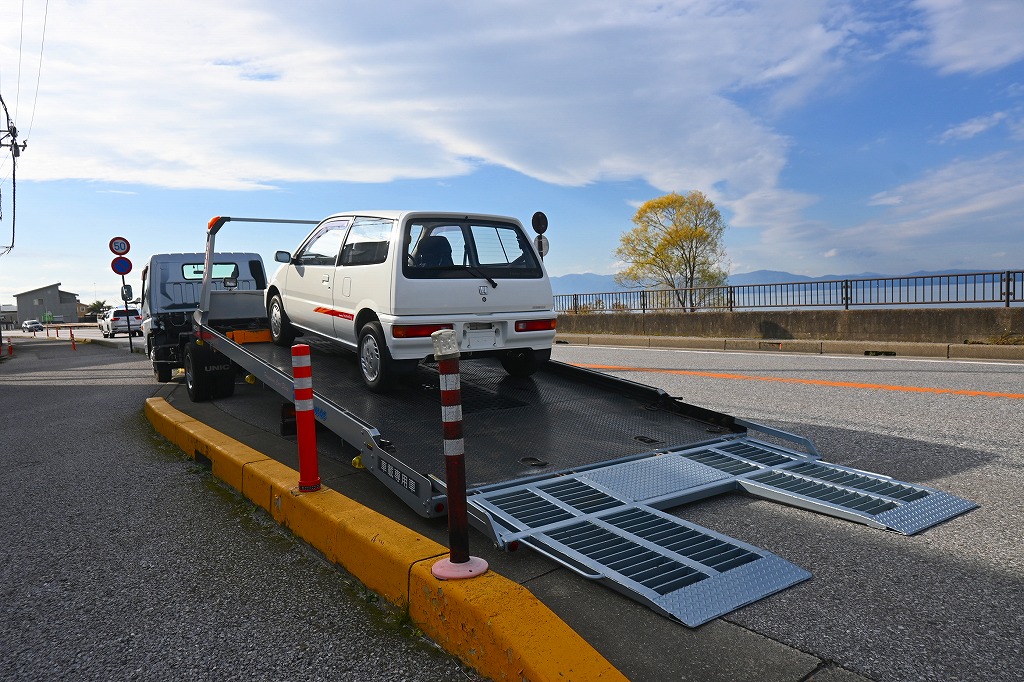 本日、兵庫トゥデイ君を積載車に載せて提携工場に向かいました。